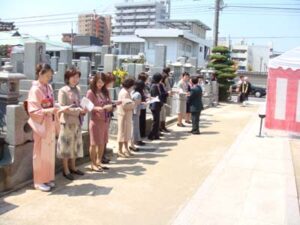 初日の法要は本堂改修落成慶讃法要(きょうさんほうよう)です。おつとめは正信念仏偈第二種、導師は前住職ではなく住職が勤めました。広島雅楽会の皆さんの雅楽に導かれ、ご出勤下さったご法中(ほっちゅう)47名。厳かな中にも盛大な法要を厳修させていただきました。(法要についてはDVDに納めてあり、スナップがあるようでありません)