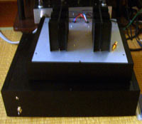 電源部とアンプ部で筐体は二つ。電源部はスイッチング電源の集合体である。3mm厚のアルミパネルに20mm程度の穴を開けるのに四苦八苦しながら、ケース加工を済ませ。アンプ基板も組み立てる。途中、トランジスタの品種を間違え思わぬ電圧値が測定され焦ったが、部品を外しトランジスタが生きていることを確認し半田づけ直して事なきを得た。
