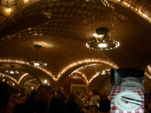 さて、遅い朝食に食べたベーグルが腹もてしたので、昼食は抜きで早めの夕食をとることになりました。今まで過去2回、ニューヨークにおいて、おいしいな(値段を加味して、過去参照)、というものを食べていませんので、今回は誰でも知っていると思われるグランドセントラルのオイスターバーに行きました。ニューヨークで飲む赤ワインは何故かスパイシーなものが多いので、今回は白ワインオンリーにしました(1本では足りなかった・・・)。
